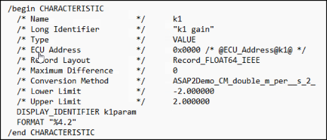 Characteristic in the ASAP2 file.