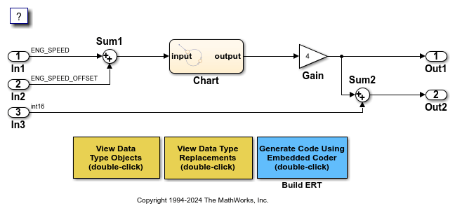 The example model FixedPointCodeGeneration uses fixed-point data types. So that you can more easily see the fixed-point data type in the generated code, in this example, you create a Simulink.Parameter object that appears in the code as a global variable.