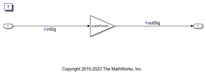 Open the example model GetSetScalar. The model creates the data objects inSig, outSig, and scalarParam in the base workspace. The objects correspond to the signals and parameter in the model.