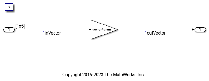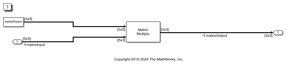 Open the example model GetSetMatrix. The model creates the data objects matrixInput, matrixParam, and matrixOutput in the base workspace. The objects correspond to the signals and parameter in the model.