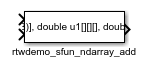 The generated TLC block file for the S-function is rtwdemo_sfun_ndarray_add.tlc.