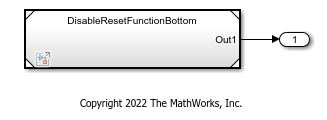open_system(modelBottom);Open the Configuration Parameters dialog box for DisableResetFunctionBottom. On the Interface pane, in the Advanced parameters section, select the Remove Disable Function and Remove Reset Function parameters.