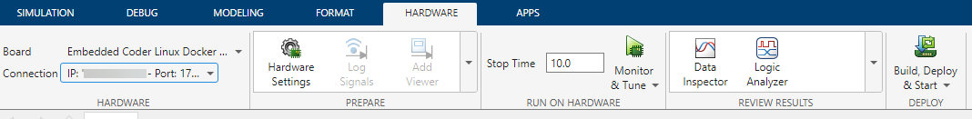 Simulink Coder™ enables you to perform external mode simulation for an AUTOSAR adaptive model and DDS model using the Hardware tab in the toolstrip.