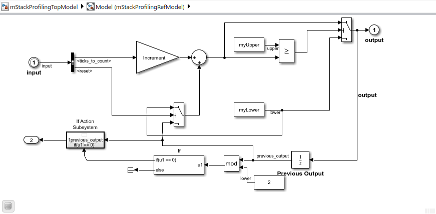 mStackProfilingRefModel_step.In the Results section, click Highlight Code. The code generation report shows the call in the generated code.
