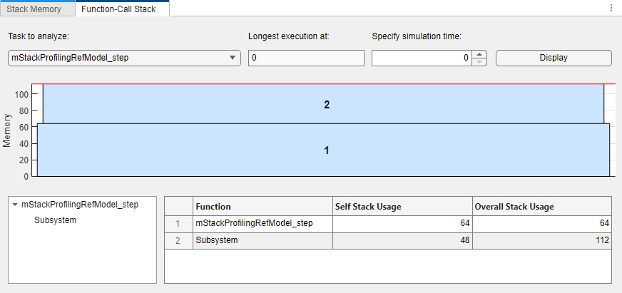 At the simulation step where a task takes longest to execute, you can view the memory usage of the function-call stack.