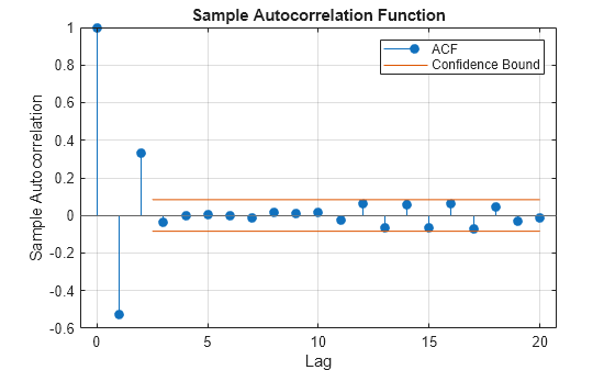 autocorr(___) plots the sample ACF of the input
