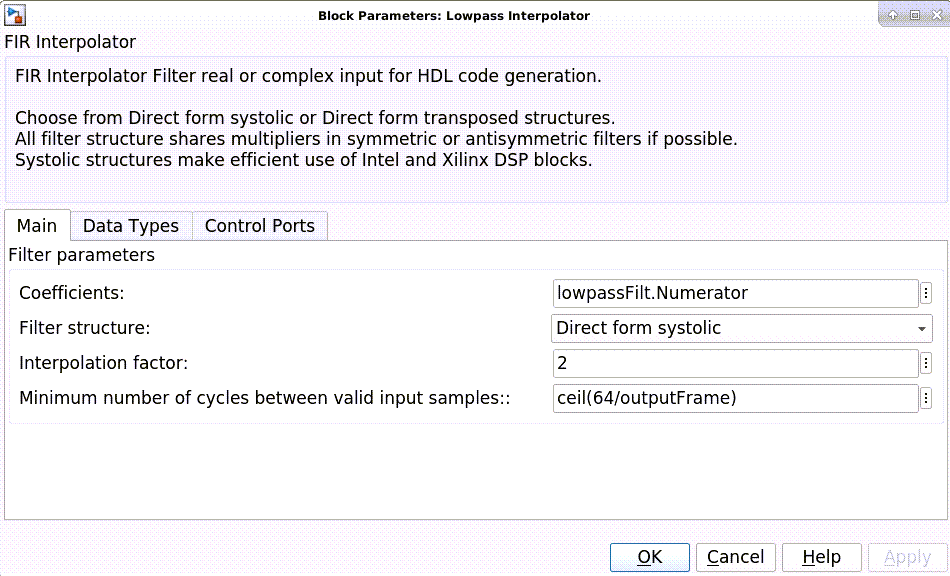 AudioFilterMultipleAXI4StreamChannelsZedBoardExample_01.png AudioFilterMultipleAXI4StreamChannelsZedBoardExample_02.png CICCompParameters.png CICDecimatorParameters.png DDCNCOParameters.png DDCStructure.png DUCStructure.png DUClowpassParameters.png DUCncoParameters.png DiscreteFIRSharingHDLExample_01.png DiscreteFIRSharing_Arch.png DiscreteFIRSharing_HDLBlkProps.png DiscreteFIRSharing_NoOptims.png DiscreteFIRSharing_Resource.png DiscreteFIRSharing_SubSystem.png DiscreteFIRStreamingHDLExample_01.png DiscreteFIRStreaming_HDLArch.png DiscreteFIRStreaming_HDLArchNoOptim.png DiscreteFIRStreaming_HDLBlockProps.png DiscreteFIRStreaming_HDLBlockPropsShare.png DiscreteFIRStreaming_Resource.png DiscreteFIRStreaming_ResourceShare.png DiscreteFIRStreaming_SubSystem.png HDLImplementationOfDDCForLTEExample_01.png HDLImplementationOfDDCForLTEExample_02.png HDLImplementationOfDDCForLTEExample_03.png HDLImplementationOfDDCForLTEExample_04.png HDLImplementationOfDDCForLTEExample_05.png HDLImplementationOfDDCForLTEExample_06.png HDLImplementationOfDDCForLTEExample_07.png HDLImplementationOfDDCForLTEExample_08.png HDLImplementationOfDDCForLTEExample_09.png HDLImplementationOfDDCForLTEExample_10.png HDLImplementationOfDUCForLTEExample_01.png HDLImplementationOfDUCForLTEExample_02.png HDLImplementationOfDUCForLTEExample_03.png HDLImplementationOfDUCForLTEExample_04.png HDLImplementationOfDUCForLTEExample_05.png HDLImplementationOfDUCForLTEExample_06.png HDLImplementationOfDUCForLTEExample_07.png HDLImplementationOfDUCForLTEExample_08.png HDLImplementationOfDUCForLTEExample_09.png HDLImplementationOfDUCForLTEExample_10.png HDLImplementationOfDUCForLTEExample_11.png HDLImplementationOfDUCForLTEExample_12.png HDLImplementationOfDUCForLTEExample_13.png LAbutton_toolstrip.png MultichannelFIRFilterForFPGAExample_01.png MultichannelFIRFilterForFPGAExample_02.png PolyphaseChannelizerBlockParams.png PolyphaseFilterBankHDLExample_01.png PolyphaseFilterBankHDLExample_02.png PolyphaseFilterBankHDLExample_03.png PolyphaseFilterBankHDLExample_04.png PolyphaseFilterBankHDLExample_05.png PolyphaseFilterBankHDLExample_06.png PolyphaseFilterBankHDLExample_07.png PolyphaseFilterBankHDLExample_08.png ProgrammableFIRFilterForFPGAExample_01.png ProgrammableFIRFilterForFPGAExample_02.png ProgrammableFIRFilterForFPGAExample_03.png VerifyHDLDesignUsingSystemVerilogDPITestBenchExample_01.png VerifyHDLDesignUsingSystemVerilogDPITestBenchExample_02.png delayResetNone.png dspmultichannelhdl_rp.png dspprogfirhdl_la.png dspprogfirhdl_la_analog.png filter_select_block_parameters.png hdlcoder_DPIC_testbench_concept.png hdlcoder_tb_options.png scope_sw_model_multiple_streamchannels.png set_target_frequency_mutiple_streamchannels.png set_target_interface_multiple_streamchannels.png sw_interface_model_multiple_streamchannels.png system_architecture_audio_multiple_streamchannels.png vivado_project_multiple_streamchannels.png xxCICCompParameters.png xxCICDecimatorParameters.png xxDDCNCOParameters.png xxDDCStructure.png xxDUCStructure.png xxDUClowpassParameters.png xxDUCncoParameters.png xxDiscreteFIRSharing_Arch.png xxDiscreteFIRSharing_HDLBlkProps.png xxDiscreteFIRSharing_NoOptims.png xxDiscreteFIRSharing_Resource.png xxDiscreteFIRSharing_SubSystem.png xxDiscreteFIRStreaming_HDLArch.png xxDiscreteFIRStreaming_HDLArchNoOptim.png xxDiscreteFIRStreaming_HDLBlockProps.png xxDiscreteFIRStreaming_HDLBlockPropsShare.png xxDiscreteFIRStreaming_Resource.png xxDiscreteFIRStreaming_ResourceShare.png xxDiscreteFIRStreaming_SubSystem.png xxLAbutton_toolstrip.png xxPolyphaseChannelizerBlockParams.png xxdelayResetNone.png xxdspmultichannelhdl_rp.png xxdspprogfirhdl_la.png xxdspprogfirhdl_la_analog.png xxfilter_select_block_parameters.png xxhdlcoder_DPIC_testbench_concept.png xxhdlcoder_tb_options.png xxscope_sw_model_multiple_streamchannels.png xxset_target_frequency_mutiple_streamchannels.png xxset_target_interface_multiple_streamchannels.png xxsw_interface_model_multiple_streamchannels.png xxsystem_architecture_audio_multiple_streamchannels.png xxvivado_project_multiple_streamchannels.png xxzedboard_setup_multiple_streamchannels.png zedboard_setup_multiple_streamchannels.png