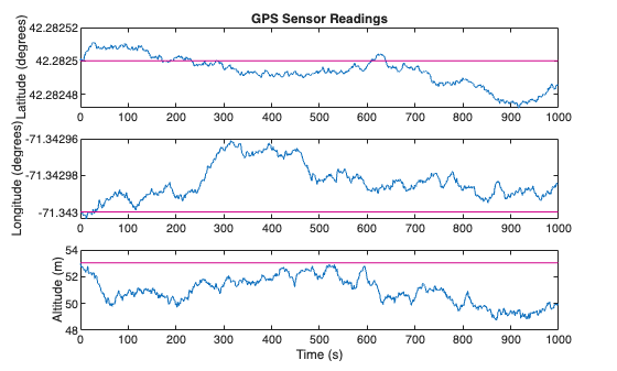 AddGPSSensorNoiseToGuidanceModelExample_01.png AddGPSSensorNoiseToGuidanceModelExample_02.png AddGPSSensorNoiseToGuidanceModelExample_03.png GenerateGPSPositionMeasurementsFromStationaryInputExample_01.png GenerateGPSPositionMeasurementsFromStationaryInputExample_02.png ModelGPSReceiverDataExample_01.png RelationshipBetweenGroundspeedAndCourseAccuracyExample_01.png SimulateGPSSensorNoiseExample_01.png SimulateGPSSensorNoiseExample_02.png SimulateGPSSensorNoiseExample_03.png