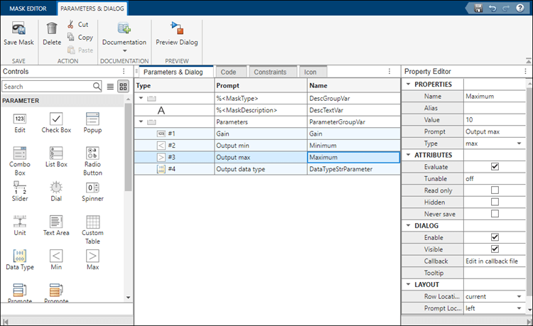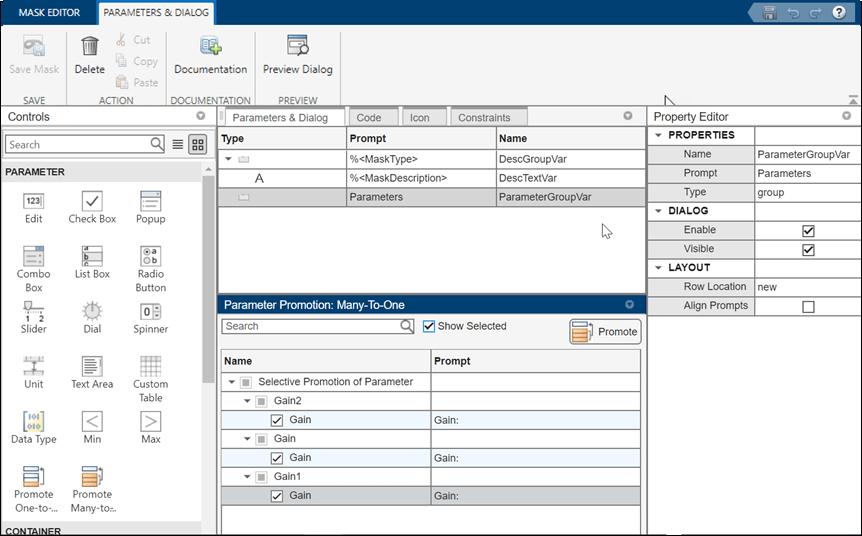 AdvancedControl.png AncillaryControls.png CallbackCode.png CreateASimpleMaskExample_eq16562643879102597799.png CreateStructuredMaskParametersExample_01.png CreateStructuredMaskParametersExample_02.png CreateStructuredMaskParametersExample_03.png CustomizeMaskParameterConstraintsExample_01.png DesignAMaskDialogBoxExample_01.png DrawMaskIconDrawingCommandsExample_01.png DynamicMaskDialogBoxExample_01.png DynamicMaskedSubsystemExample_01.png DynamicMaskedSubsystemExample_02.png EditMask.png GeneralControls.png GetMaskWorkspaceParametrsAndVariablesExample_01.png ManageInterfaceConnectorExample_01.png MaskCallbackExample_01.png MaskCallbacksInMATLABFileExample_01.png MaskDialogBoxLayoutExample_01.png MaskDisplayAndInitializationCommandsExample_01.png MaskExDialogbox.png MaskLayout.png ParameterDialog.png PortConstraintsExample_01.png PowerOn.png PreserveTunabilityOfParametersExample_01.png Preview.png PromoteMultipleParametersAsOneOnMaskExample_01.png ReuseMaskParametersAndDialogControlsMultipleBlocksExample_01.png SharePortConstraintsExample_01.png SharedConstraintsExample_01.png SimulinkMaskingDemosExample_01.png TreeDialogControlExample_01.png TunableMaskPopupParameterExample_01.png TypesOfMaskParametersExample_01.png UnsafeMaskCallbackErrorExample_01.png UnsafeNestedCallbackExample_01.png ValidatePortSignalsAmongPortsExample_01.png ValidatePortSignalsAndParameterValuesExample_01.png allow-mask-init-modify.png anatomy.png associate-constraint.png associate-to-block.png associate.png associations.png basewr_variable.png built-in-types.png bw2.png bw3.png change-parameter.png code-pane.png collapsiblePanel_text_link.png common-gain.png constraint-ip-address.png constraints.png create.png cross-port-parameterconstraint.png datatype-block.png datatype-constraint.png datatype-maskeditor.png double-and-integer-enum-class.png dv-error.png enum-class-names.png enumfile.png enumintern.png error.png evaluate.png fixed-point.png gain-promoted.png gain-promotion.png inherit-rules.png intenum1.png intenum2.png intenum3.png list-of-options.png load.png look-under-mask.png lutcontrol.png lutobjdia.png lutobject.png many-to-one.png mask-editor-force.png mask-editor.png mask-part-ref.png maskExEditor.png maskeditor-callback.png maskeditor.png masking_example.png migrate.png multi_dia.png multi_mask.png override-default-instance-value.png plot.png port-constraint.png port-identifiers.png portidentifier.png promoted.png prompt.png refer-to-xml.png referencing-in-childblock.png savefile.png share-port-constraint.png share_breakpoint_dia.png share_breakpoint_mask.png static-icon.png type-options.png user-defined.png validate-port-signal.png validate.png validation-ip-address.png validation.png variant-control-expression.png variant-start-end-tag.png workflow.png xxAdvancedControl.png xxAncillaryControls.png xxCallbackCode.png xxEditMask.png xxGeneralControls.png xxMaskExDialogbox.png xxMaskLayout.png xxParameterDialog.png xxPowerOn.png xxPreview.png xxallow-mask-init-modify.png xxanatomy.png xxassociate-constraint.png xxassociate-to-block.png xxassociate.png xxassociations.png xxbasewr_variable.png xxbuilt-in-types.png xxbw2.png xxbw3.png xxchange-parameter.png xxcode-pane.png xxcollapsiblePanel_text_link.png xxcommon-gain.png xxconstraint-ip-address.png xxconstraints.png xxcreate.png xxcross-port-parameterconstraint.png xxdatatype-block.png xxdatatype-constraint.png xxdatatype-maskeditor.png xxdouble-and-integer-enum-class.png xxdv-error.png xxenum-class-names.png xxenumfile.png xxenumintern.png xxerror.png xxevaluate.png xxfixed-point.png xxgain-promoted.png xxgain-promotion.png xxinherit-rules.png xxintenum1.png xxintenum2.png xxintenum3.png xxlist-of-options.png xxload.png xxlook-under-mask.png xxlutcontrol.png xxlutobjdia.png xxlutobject.png xxmany-to-one.png xxmask-editor-force.png xxmask-editor.png xxmask-part-ref.png xxmaskExEditor.png xxmaskeditor-callback.png xxmaskeditor.png xxmasking_example.png xxmigrate.png xxmulti_dia.png xxmulti_mask.png xxoverride-default-instance-value.png xxplot.png xxport-constraint.png xxport-identifiers.png xxportidentifier.png xxpromoted.png xxprompt.png xxrefer-to-xml.png xxreferencing-in-childblock.png xxsavefile.png xxshare-port-constraint.png xxshare_breakpoint_dia.png xxshare_breakpoint_mask.png xxstatic-icon.png xxtype-options.png xxuser-defined.png xxvalidate-port-signal.png xxvalidate.png xxvalidation-ip-address.png xxvalidation.png xxvariant-control-expression.png xxvariant-start-end-tag.png