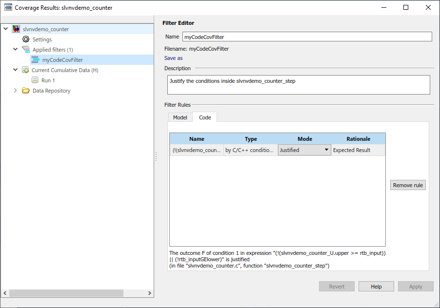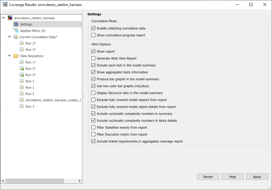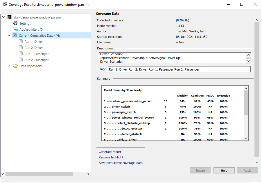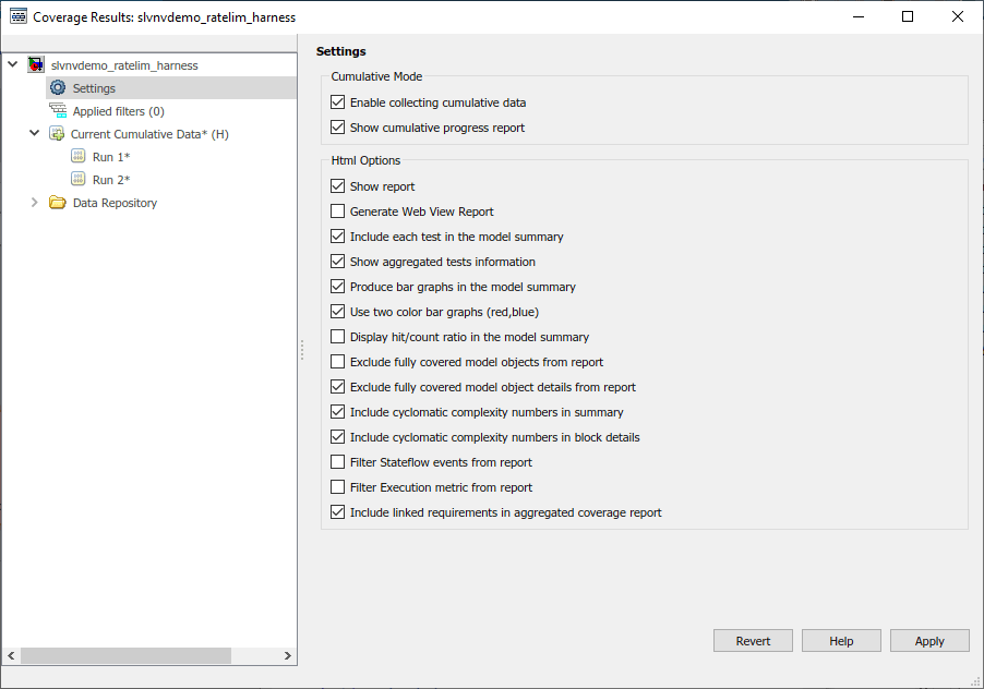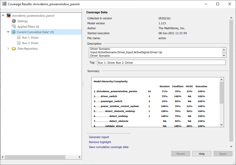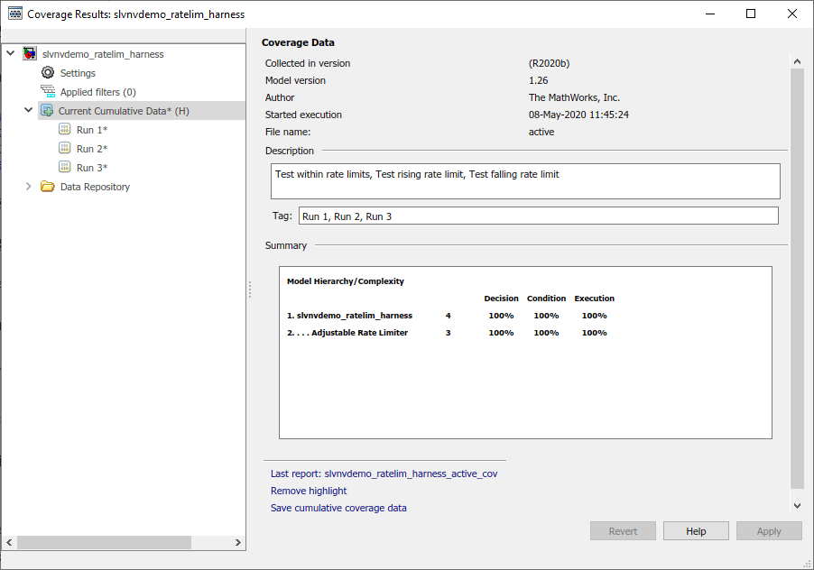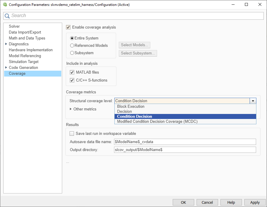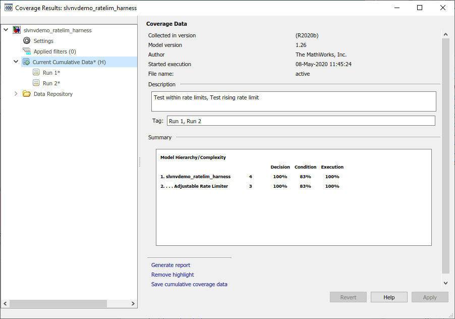 AnalyzingMCDCForCascadedLogicBlocksExample_01.png AnalyzingMCDCForCascadedLogicBlocksExample_02.png AnalyzingMCDCForCascadedLogicBlocksExample_03.png BasicOperationOfTheModelCoverageToolExample_01.png CollectCoverageForMultipleSimulationsExample_01.png CommandLineVerificationExample_01.png CommandLineVerificationExample_02.png CommandLineVerificationExample_03.png CommandLineVerificationExample_04.png CommandLineVerificationExample_05.png CoverageForMATLABFunctionBlocksExample_01.png CoverageForMATLABFunctionBlocksExample_02.png CoverageForMATLABFunctionBlocksExample_03.png CoverageForMATLABFunctionBlocksExample_04.png CoverageForMATLABFunctionBlocksExample_05.png CoverageForMATLABFunctionBlocksExample_06.png CoverageForMATLABFunctionBlocksExample_07.png CoverageForMATLABFunctionBlocksExample_08.png CoverageForMinMaxCollapseModeExample_01.png CoverageForSFunctionsExample_01.png CreateACoverageHarnessWithDefaultOptionsExample_01.png CreateACoverageHarnessWithDefaultOptionsExample_02.png CreatingAndUsingCoverageFiltersExample_01.png CumulativeCoverageAnalysisExample_01.png CumulativeCoverageAnalysisExample_02.png ExCcCruiseControlDoublepressSfunExample_01.png ExploreModelAndCodeCoverageDifferencesExample_01.png ExploreModelAndCodeCoverageDifferencesExample_02.png ExploreModelAndCodeCoverageDifferencesExample_03.png ExploreModelAndCodeCoverageDifferencesExample_04.png ExploreModelAndCodeCoverageDifferencesExample_05.png ExtractAtomicSubsystemToNewModelExample_01.png ExtractSubchartAndCopyToANewModelExample_01.png ExtractingDetailedCoverageDataExample_01.png FilterCodeCoverageOutcomesUsingTheCodePaneExample_01.png FilterCodeCoverageOutcomesUsingTheCodePaneExample_02.png FilterCoverageOutcomesInGeneratedCodeExample_01.png LogicalOperatorCascadePatternsExample_01.png LogicalOperatorCascadePatternsExample_02.png LogicalOperatorCascadePatternsExample_03.png LogicalOperatorCascadePatternsExample_04.png LogicalOperatorCascadePatternsExample_05.png LogicalOperatorCascadePatternsExample_06.png MP_switch_aggregate.png MP_switch_integration.png MP_switch_unit.png MinMaxRelBoundCoverageExample_01.png ObtainCumulativeCoverageForReusableSubsystemsExample_01.png OperationsOnCoverageDataExample_01.png RecordCoverageInParallelSimulationsExample_01.png RecordCoverageInParallelSimulationsExample_02.png RemoveRulesFromFilterObjectsExample_01.png SaturationOnIntegerOverflowCoverageExample_01.png SoftwareintheLoopCodeCoverageExample_01.png aggregated-covTable.png aggregated_integration_and_unit_report.png aggregated_integration_tests.png aggregated_results_reports.png aggregated_unit_tests.png applied-filters-create-new.png basic_operation_2.png basic_operation_3.png basic_operation_4.png basic_operation_5.png basic_operation_6.png code-cov-report-links.png code-pane-cov-summary.png code_cov_justified_outcome.png codeselectorCoverageAfter.png collapsed-decision-results-dim2.png collapsed-decision-results.png collapsed-relbound-results-dim2.png collapsed-relbound-results.png complete-cov-function-call.png complete-cov-statement.png complete-cov-switch-label.png condition-tooltip-not-covered.png counterbusFcnIm.png cov-results-explorer-exclusion.png cov_filt.png cumulative_manual_final_explorer1.png cumulative_manual_final_explorer2.png cumulative_manual_final_explorer3.png cumulative_manual_final_report.png cumulative_manual_settings1.png cumulative_manual_t1_explorer1.png cumulative_manual_t2_explorer1.png cumulative_manual_t2_explorer2.png cumulative_manual_t2_explorer3.png cumulative_manual_t2_report.png cumulative_manual_t3_explorer1.png cumulative_manual_t3_explorer2.png cumulative_manual_t3_report.png cvLogicCascadeMcdc_MatlabFunc.png cvLogicCascadeMcdc_highlight.png cvLogicCascadeMcdc_informer.png cvLogicCascadeMcdc_report_MatlabFunc.png cvLogicCascadeMcdc_report_MatlabFunc2.png cvLogicCascadeMcdc_report_and.png cvLogicCascadeMcdc_report_and_non_sc.png cvLogicCascadeMcdc_report_or.png dockedCovRpt.png driver-results-explorer.png driver-scenario-coverage-results.png entireSystem-Summary.png exclude-decision-link.png excluded-decision.png filteredOutcome1.png filteredOutcome2.png filteredReportImage.png filteredRptSummary.png justified-condition.png metricselector_coverage_after.png metricselector_coverage_before.png model-block-sil-mode.png model-click-multiport-switch.png objectsFiltered.png operations_manual_1.png partial-cov-condition.png relBound3Scalar.png relBound3Vector.png relBoundMixedInputs.png resultsExplorer1Filter.png resultsExplorer2FilterRules.png resultsExplorerCovData.png saturation-full-coverage.png saturation-missing-coverage.png select-coverage-filter-dialog.png sfun_to_filter.png sil-code-annotations.png sil-cov-details.png sil-pil-app-cov.png sil-switch-details.png slvnvdemo-covfilter-filteredSummary.png slvnvdemo-eml-model-thumbnail.png slvnvdemo_covfilter_DeadLogic_FilterRules.png slvnvdemo_covfilter_DeadLogic_Option.png slvnvdemo_covfilter_ExcludeAfter_CovDetails.png slvnvdemo_covfilter_ExcludeAfter_FilterEditor.png slvnvdemo_covfilter_ExcludeAfter_UpdatedModel.png slvnvdemo_covfilter_ExcludeBefore_ContextMenu.png slvnvdemo_covfilter_ExcludeBefore_FilterEditor_Named.png slvnvdemo_covfilter_ExcludeBefore_FilterEditor_Untitled.png slvnvdemo_covfilter_FinalReview_CovDetails_Summary.png slvnvdemo_covfilter_JustifyOutcomes_FilterEditor.png slvnvdemo_covfilter_JustifyOutcomes_ModelAfter.png slvnvdemo_covfilter_JustifyOutcomes_ModelBefore.png slvnvdemo_covfilter_LoadFilter_Option.png slvnvdemo_covfilter_LoadFilter_UpdatedFilterList.png slvnvdemo_covfilter_NewFilter_Named.png slvnvdemo_covfilter_NewFilter_Option.png slvnvdemo_covfilter_Simulate_HighlightedModel.png stacked-annotations-condition-2.png stacked-annotations-condition-justified.png stacked-annotations-decision.png stacked-annotations.png subsys1-covTable.png subsys2-covTable.png sum-block-params-saturation.png two-scenario-coverage-results.png two-scenario-results-explorer.png unfilteredRpt.png xxMP_switch_aggregate.png xxMP_swi