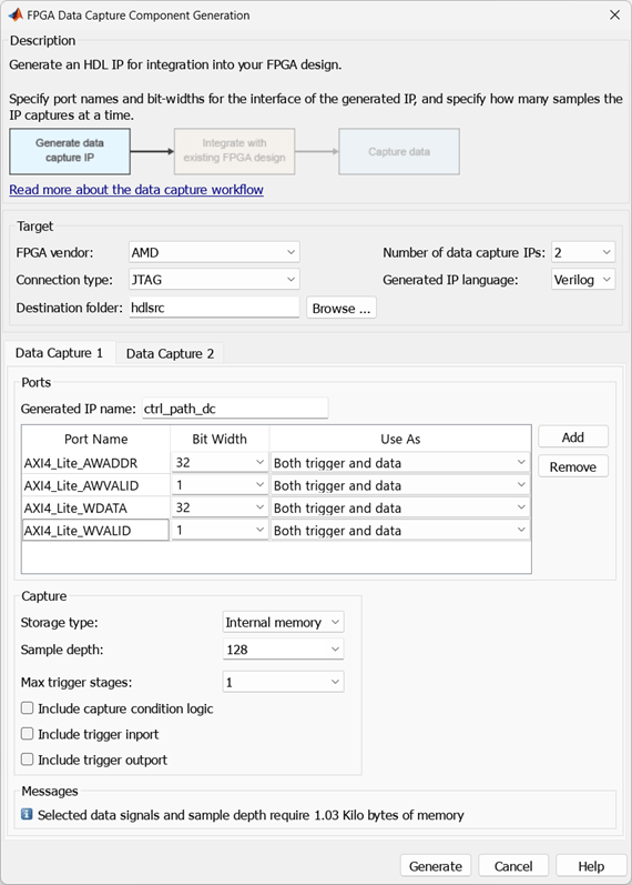 ComponentGenerationXilinx.png LaunchFPGADataCaptureComponentGeneratorExample_01.png MatrixMultiplicationOnFPGADDRUsingEthernetMATLABAsAXIMExample_01.png ctrl_path_dc.png ctrl_path_trig_settings.png data_path_dc.png data_path_trig_settings.png data_struct_ws.png datacapture_id.png exEthernetAxim_1.png exEthernetAxim_2.png exEthernetAxim_3.png ext_ddr_address_mapping.png exteranl_ddr_design_1.png exteranl_ddr_design_2.png folder_structure.png hdlcoder_external_memory_hw_output_ethernet_axim.png hdlcoder_external_memory_ip_block_diagram_ethernet_axim.png hdlcoder_external_memory_matrix_vector_mult_ethernet_axim.png hdlcoder_external_memory_reference_setting_ethernet_axim.png hdlcoder_external_memory_target_interface_ethernet_axim.png kc705EthernetFdcBd.png large_data_capture.png multiple_fdc.png result_mfdc.png user_repo.png vivado_block_design.png vivado_block_design_fdc.png xadc001.png xadc002.png xadc003.png xadc004.png xadc005.png xadc006.png xadc007.png xadc008.png xadc009.png xadcSelectEthernet.png xadc_bitmask.png xaxim_1.png xaxim_2.png xethernetaximzynq_1.png xethernetaximzynq_2.png xethernetaximzynq_3.png xethernetaximzynq_4.png xethernetaximzynq_6.png xethernetaximzynq_7.png xpcieaxim_1.png xpcieaxim_2.png xxComponentGenerationXilinx.png xxctrl_path_dc.png xxctrl_path_trig_settings.png xxdata_path_dc.png xxdata_path_trig_settings.png xxdata_struct_ws.png xxdatacapture_id.png xxexEthernetAxim_1.png xxexEthernetAxim_2.png xxexEthernetAxim_3.png xxext_ddr_address_mapping.png xxexteranl_ddr_design_1.png xxexteranl_ddr_design_2.png xxfolder_structure.png xxhdlcoder_external_memory_hw_output_ethernet_axim.png xxhdlcoder_external_memory_ip_block_diagram_ethernet_axim.png xxhdlcoder_external_memory_matrix_vector_mult_ethernet_axim.png xxhdlcoder_external_memory_reference_setting_ethernet_axim.png xxhdlcoder_external_memory_target_interface_ethernet_axim.png xxkc705EthernetFdcBd.png xxlarge_data_capture.png xxmultiple_fdc.png xxresult_mfdc.png xxuser_repo.png xxvivado_block_design.png xxvivado_block_design_fdc.png xxxadc001.png xxxadc002.png xxxadc003.png xxxadc004.png xxxadc005.png xxxadc006.png xxxadc007.png xxxadc008.png xxxadc009.png xxxadcSelectEthernet.png xxxadc_bitmask.png xxxaxim_1.png xxxaxim_2.png xxxethernetaximzynq_1.png xxxethernetaximzynq_2.png xxxethernetaximzynq_3.png xxxethernetaximzynq_4.png xxxethernetaximzynq_6.png xxxethernetaximzynq_7.png xxxpcieaxim_1.png xxxpcieaxim_2.png