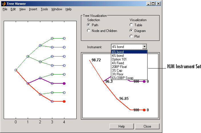 Display an HJM Price Tree for Named Instruments