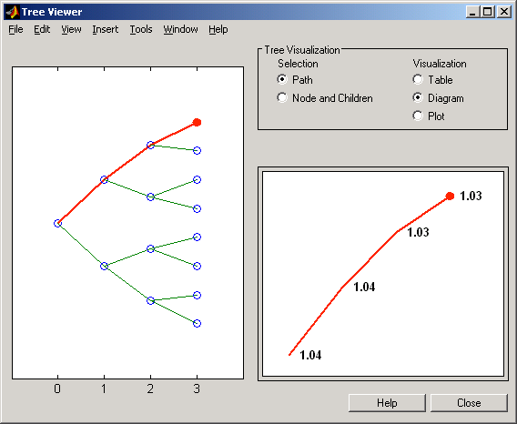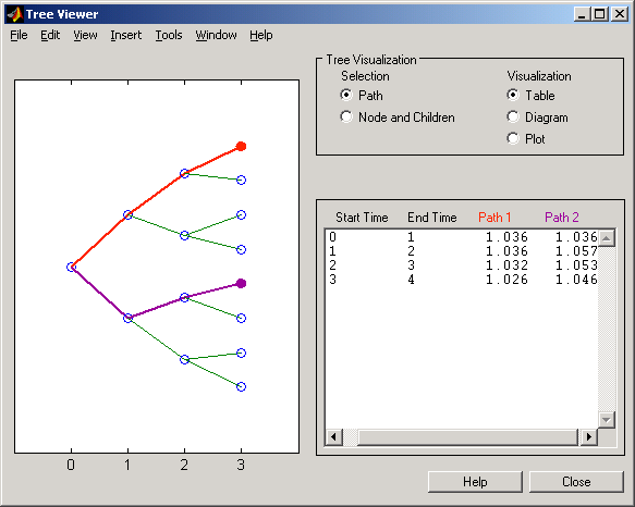 To see a plot of interest rates along the chosen branches, click Path and Plot in the Tree Visualization pane.
