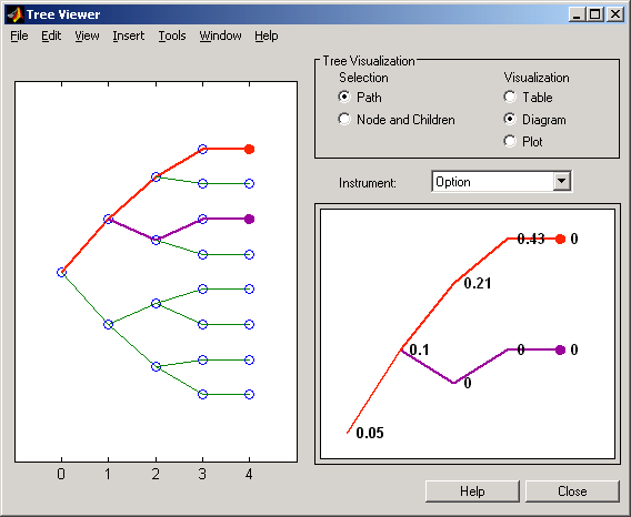The treeviewer function displays the structure of an HJM tree in the