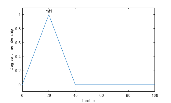 fis = addMF(fis,"throttle","trimf",[0 20 40],VariableType="output"); plotmf(fis,"output",1)