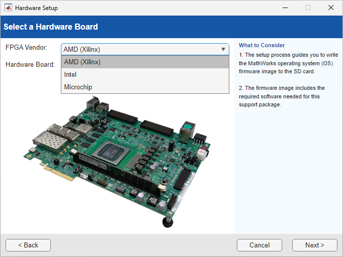 up hardware boards supported by HDL Coder. The Hardware Setup tool guides you through the