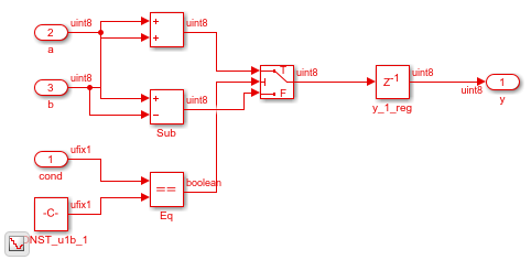 To open the generated Simulink™ model, select the link. The model is saved in the hdlimport/comparator path relative to the current folder. You can simulate the model and observe the simulation results.
