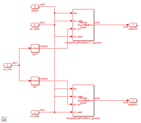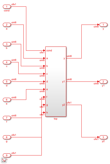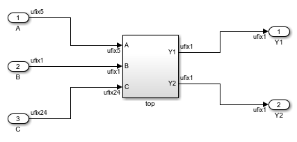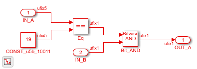 The top-level DUT Subsystem name is the same as the top-level module name in the input file. You see that the import inferred a Compare to Constant block from the input Verilog code.
