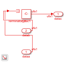 module. The corresponding Subsystem in the Simulink model has the input ports connected to Terminator blocks
