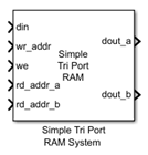 The Simple Tri Port RAM System block models a simple tri-port RAM that