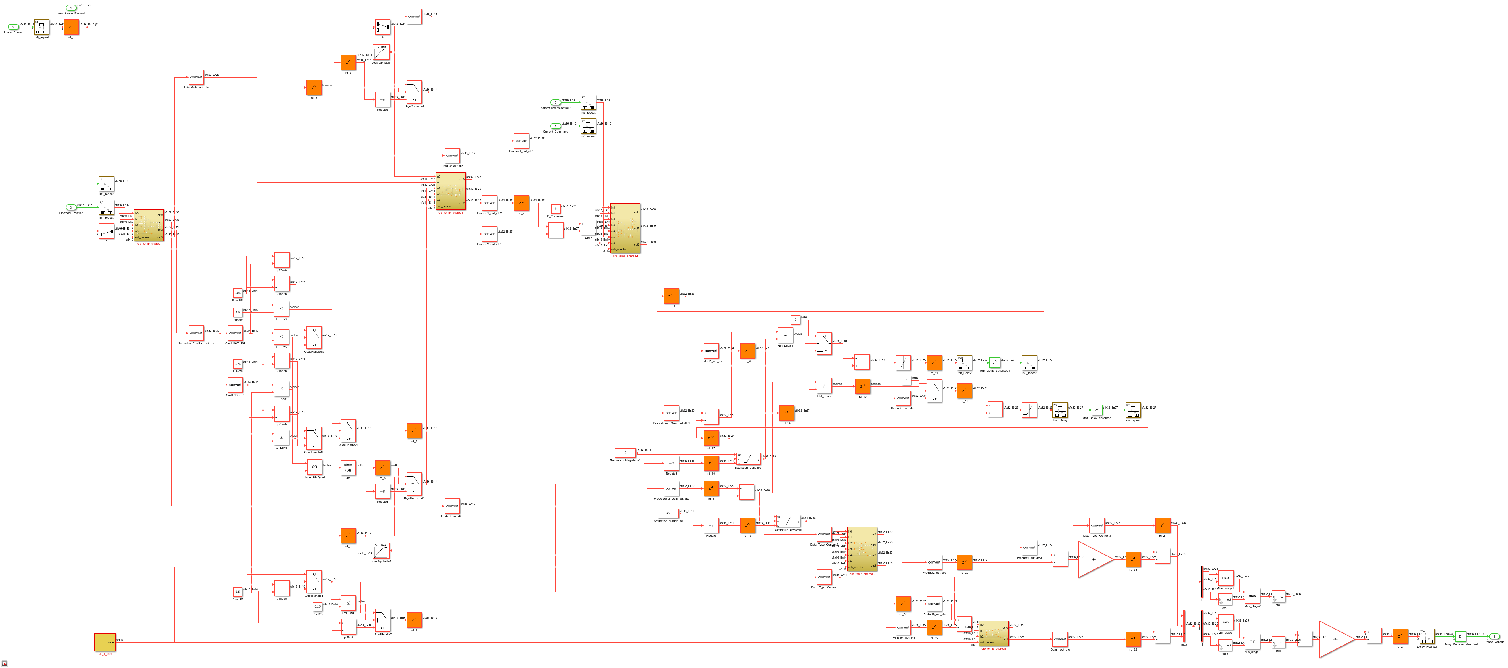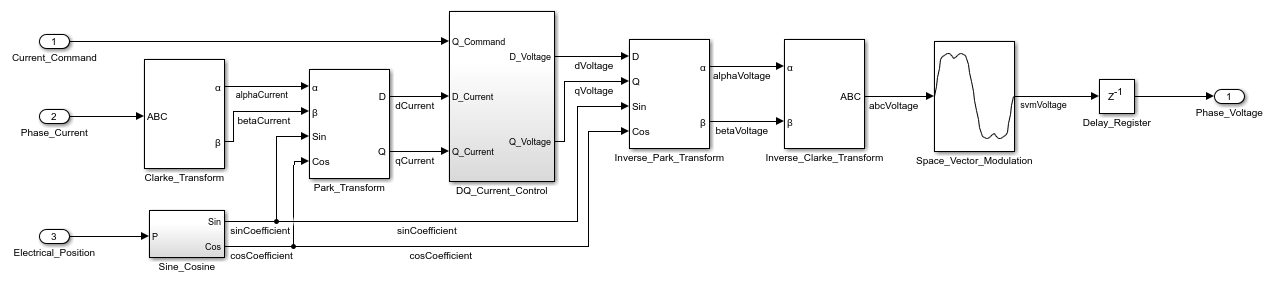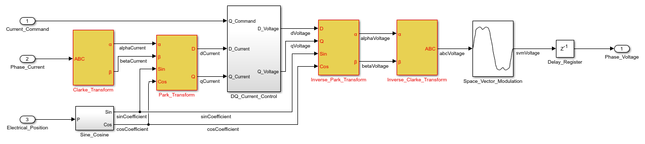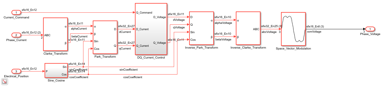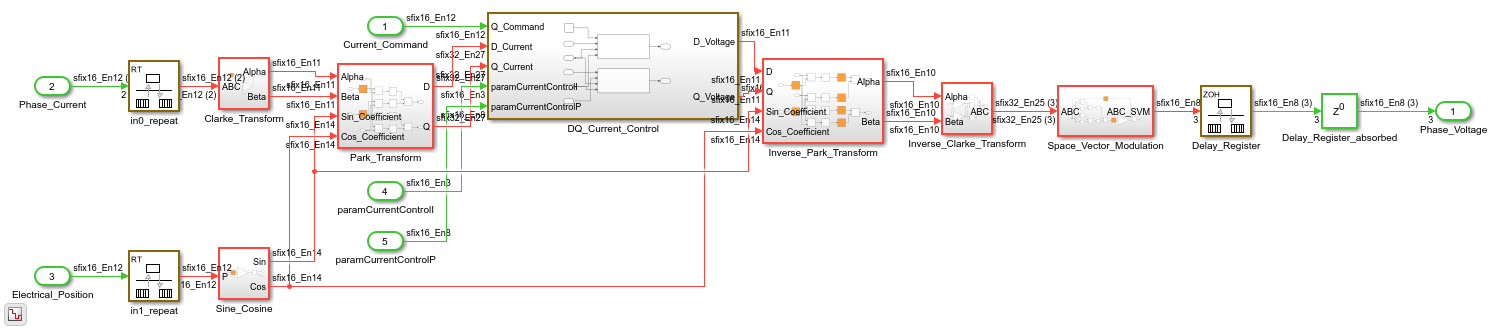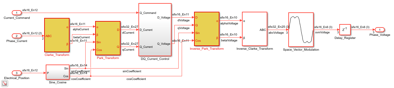 load_system(gmHdlDut); set_param(gmHdlModel, 'SimulationCommand', 'update'); set_param(gmHdlDut, 'ZoomFactor', 'FitSystem'); hilite_system([gmHdlDut '/ctr_0_799']); hilite_system([gmHdlDut '/Clarke_Transform/Clarke_Transform_shared']); hilite_system([gmHdlDut '/Park_Transform/Park_Transform_shared']); hilite_system([gmHdlDut '/Inverse_Park_Transform/Inverse_Park_Transform_shared']); open_system(gmHdlDut); Simulink.BlockDiagram.arrangeSystem(gmHdlDut);