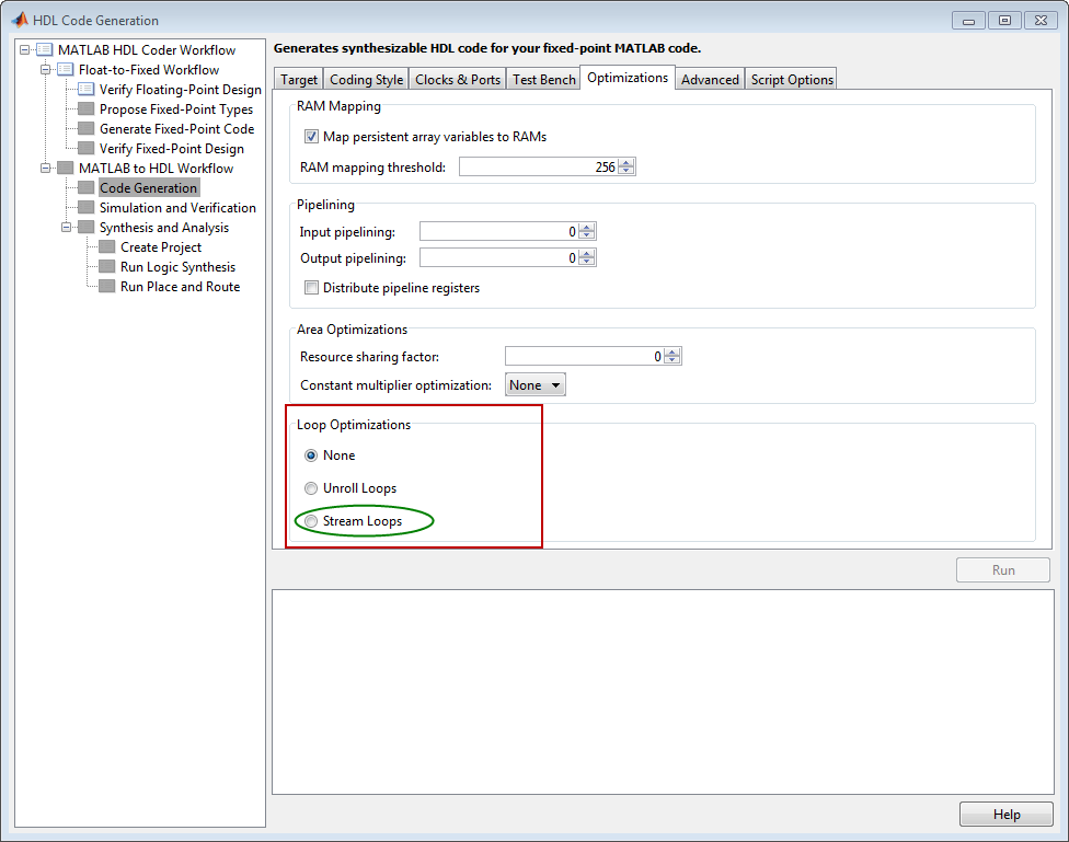 Right-click the Code Generation step. Choose the option Run to selected task to run all the steps from the beginning through HDL code generation.