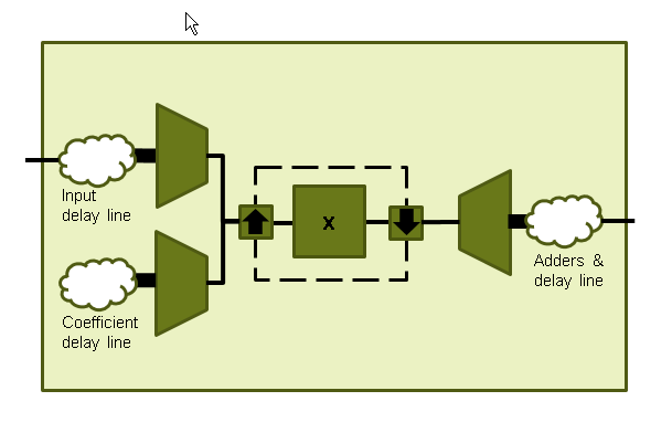 The filter block also participates in clock-rate pipelining, if enabled in Configuration Parameters. This feature is enabled by default. See Clock-Rate Pipelining.