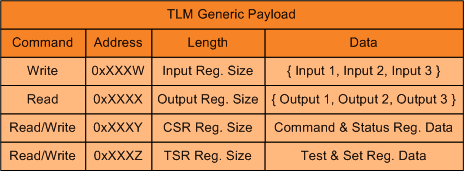 Has input and output registers either sized to hold an entire data set required or created by the TLM component when it executes the behavior (algorithm step function) in your virtual platform environment
