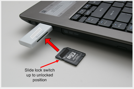 Insert a 4 GB or larger SD card into the card reader on the host computer. The card must be in FAT32 format.