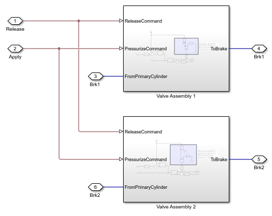 This subsystem shows the modeling of the tandem primary cylinder.