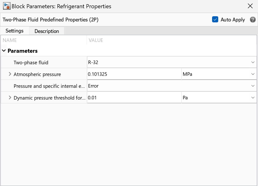 The mean charge density is 159kg/m3, which is suitable for using R32. An undercharged cycle can struggle to converge or initialize. You can modify the refrigerant charge by adjusting the parameters of the components that influence the mass and volume of the two-phase fluid in the cycle. For example, you can adjust the initial vapor quality of the Condenser Evaporator (2P-MA) block.