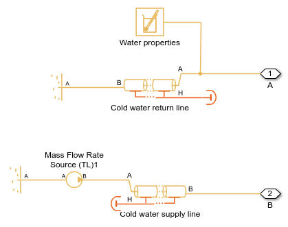 This example shows a hydraulic oil system with a thermal control using Simscape™ Fluids™ Thermal Liquid blocks. The hydraulic oil system consists of an oil storage tank represented by the Tank (TL) block with two inlets, a pump represented by a Mass Flow Rate Source (TL) block, and pipelines represented by Pipe (TL) block.