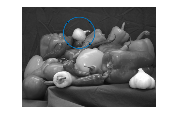 centerLocation = [220, 100]; radius = 60; hC = images.roi.Circle(... "Parent", hAxes,... "FaceAlpha",0,... "Center",centerLocation,... "Radius", radius);