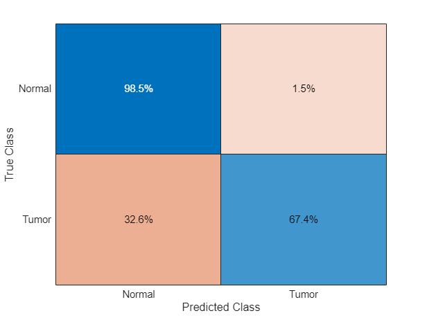 figure confusionchart(cm,["Tumor","Normal"],Normalization="row-normalized")