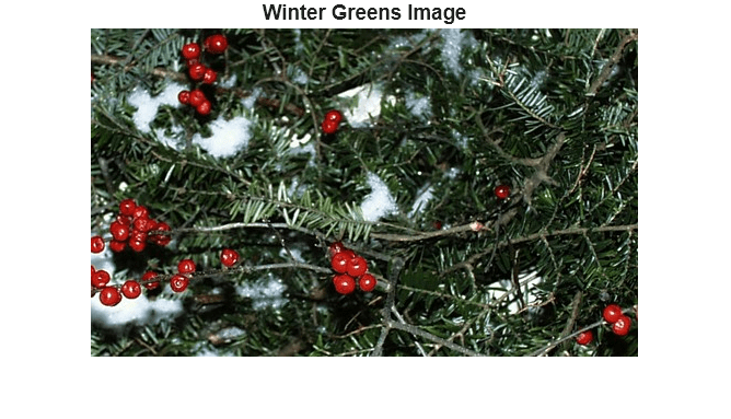 C = imread('greens.jpg'); figure imshow(C) title('Winter Greens Image','FontSize',14);