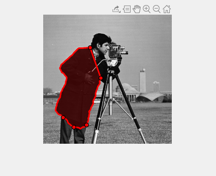 Figure contains an axes object. The hidden axes object contains 2 objects of type image, images.roi.assistedfreehand.