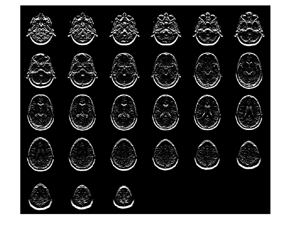 Create a 3-D Sobel filter that detects horizontal edges in the volume. Horizontal edges appear where there is a large gradient magnitude in the y direction, so specify the direction of the Sobel filter as "Y". The Sobel filter smooths the gradient in the x and z directions.