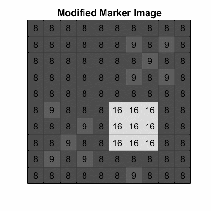One way to create a marker image is to subtract a constant value from each pixel of the mask image. In this example, the marker image is created by subtracting