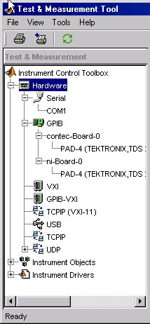 You can use the Test & Measurement Tool to examine or configure your IVI configuration store. To open the tool, type: