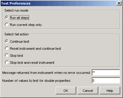 The Test Preferences dialog box allows you to set certain behaviors of the tool when running a test.