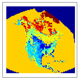 [...] = avhrrlambert(region,filename, scalefactor, latlim, lonlim) returns data for the specified region. The result may extend somewhat beyond the requested area. The limits are two-element vectors in units of degrees, with latlim in the range [-90 90] and lonlim in the range [-180 180]. If latlim and lonlim are empty, the entire area covered by the data file is returned. If the quadrangle defined by latlim and lonlim (when projected to form a polygon in the appropriate Lambert Equal Area Azimuthal projection) fails to intersect the bounding box of the data in the projected coordinates, then latgrat, longrat, and Z are empty.
