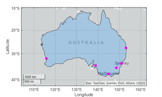 mappointshapeobject) and your query points are in geographic coordinates, first project the points by using theprojfwdfunction. Then, create a point shape from the projected coordinates by using themappointshapefunction.