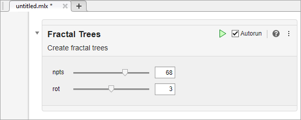 Select Fractal Trees from the list. MATLAB adds the Fractal Trees task to the live script.