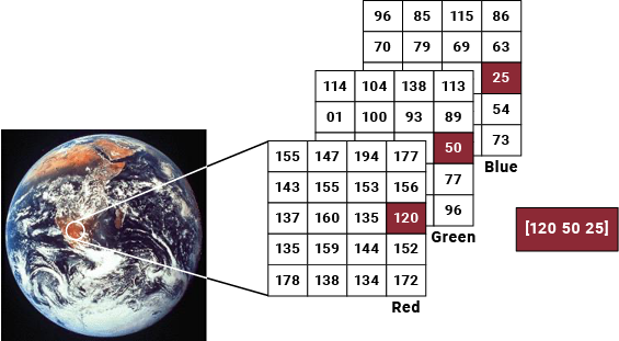The data arrays of RGB images allow you to easily access image size and color. The size of the image data array corresponds to the number of pixels in the image. For example, X represents an image that is composed of 257 rows and 250 columns of pixels.