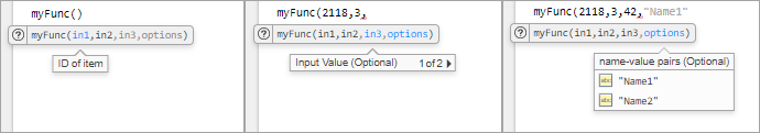 MATLAB uses this function signature description to inform code suggestions and completion.