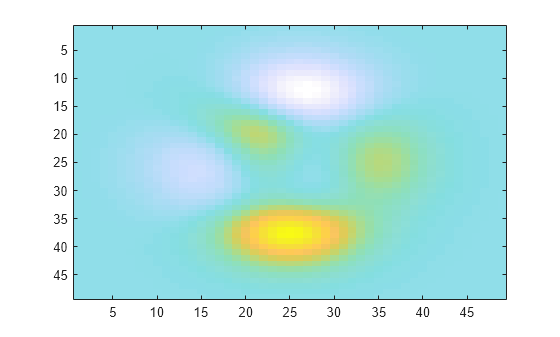Create an image. Vary the transparency across the image based on the color values. By default, the image clamps the transparency values between 0 and 1. Values less than 0 are completely transparency and values greater than 1 are completely opaque. Instead, transform the transparency values to span the alphamap using the alpha scaled command.