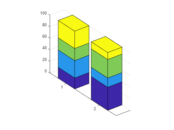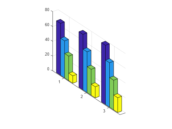 zas a matrix with one column for each series. For an m-by-n matrix, the function plots the bars on an x-axis ranging from1to n and a y-axis ranging from1to m.