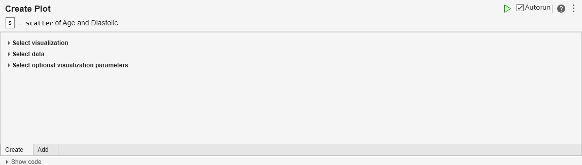 To add the Create Plot task to a live script in the MATLAB Editor: