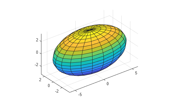 Example: ellipsoid(0,0,0,2,1,1,FaceAlpha=0.5) plots an ellipsoid that