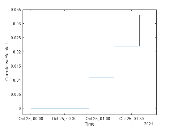h = stairs(tbl,"Time","CumulativeRainfall"); axis padded